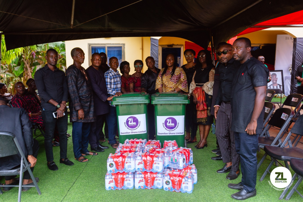 The items, which included 25 cartons of bottled Voltic water and two big size Zoomlion branded refuse bins, were in aid of the one-week observation of late Christian Atsu, which was slated for Saturday, March 4, 2023, at the Adrigarnor Astro Turf park.