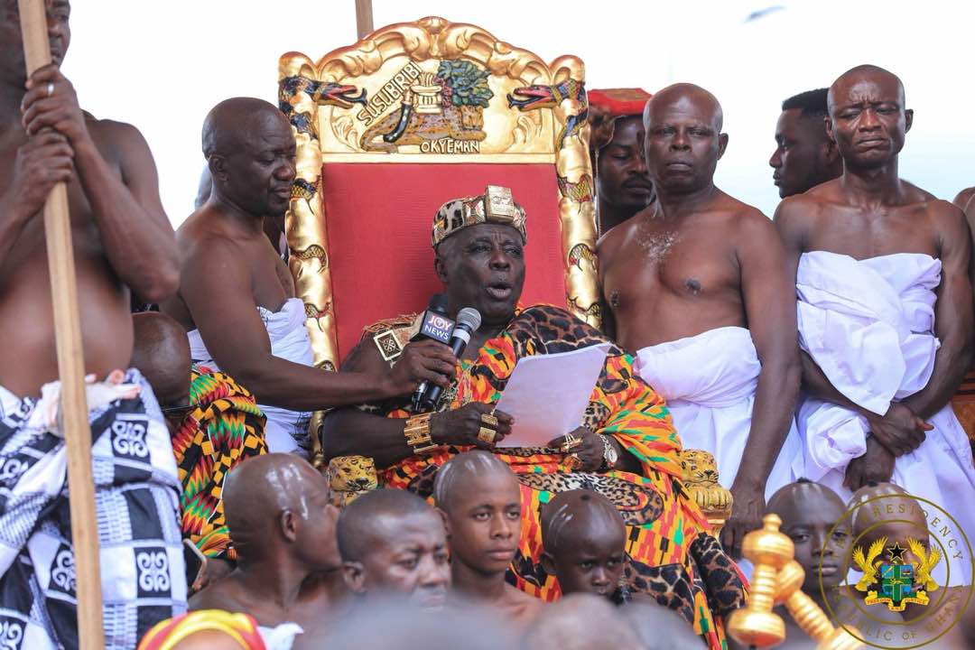 The Overlord of the Asante Kingdom, Otumfuor Osei Tutu II, has arrived at Akyem Abuakwa where he is guest to the Okyenehene, Osagyefo Amoatia Oforipene.