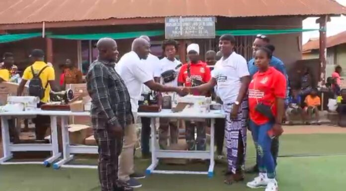 During a brief ceremony held in Nkaseim, resources including industrial sewing machines, hand sewing machines, and threads were presented to 10 master craftsmen and 50 apprentices.
