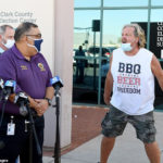 A furious Trump supporter wearing a tank top that said simply ‘BBQ, Beer, Freedom’ has interrupted an official press conference to yell: ‘Joe Biden...