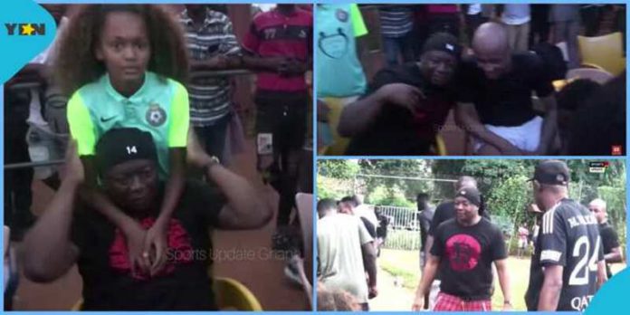 As he arrived at the match venue, Abedi Pele warmly greeted familiar faces like Anthony Baffoe and other acquaintances. However, when he came face to face with Liam, his grandson, he couldn’t contain his joy. Abedi embraced the young boy in a big hug, creating a beautiful moment of grandfatherly love.