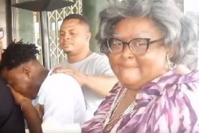 Ghanaian comic actor Kyekyeku breaks down and weeps, as actress Vivian Jill surprises him with GH¢10,000 in support of the premiere of his movie “1957”.