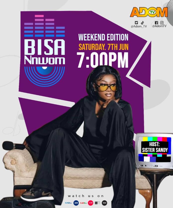 Adom TV’s hit music request show, Bisa Nnwom, hosted by the ever-lively Sister Sandy, is getting a major boost with the launch of a brand-new Saturday edition.