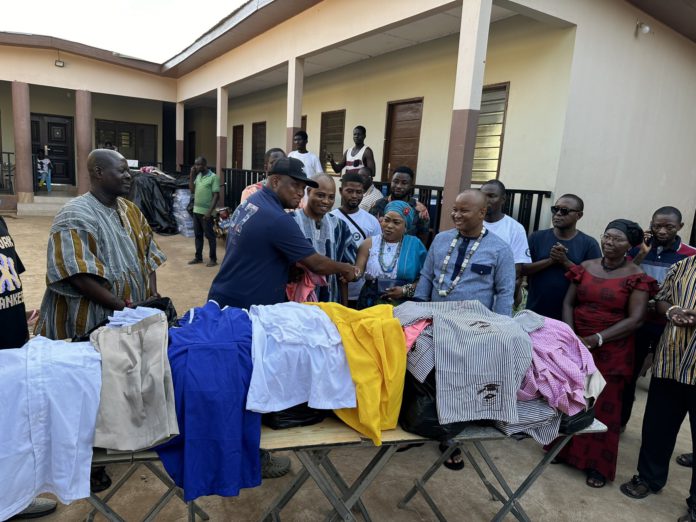 The chief sent an army of dressmakers with their sewing machines and fabrics from Accra to North Tongu in the Volta region to sew free dresses for displaced school pupils in the constituency.