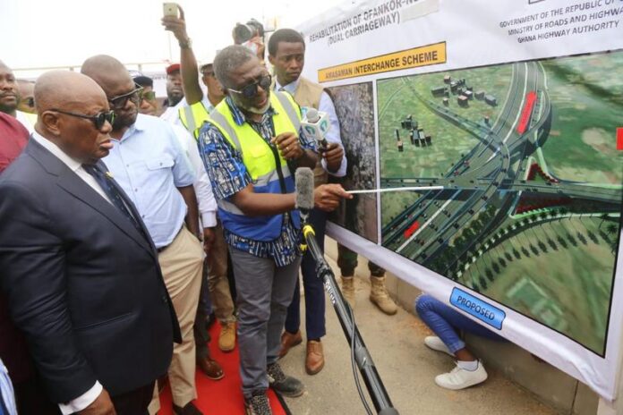 President Akufo-Addo has inspected the progress of work on the 802-meter dual carriageway (flyover) at Flower-Pot, as well as the Ofankor-Nsawam road.