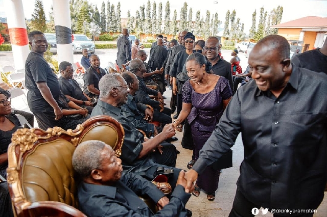 Despite the grief, Mr Kufuor beamed with smiles as he engaged Mr Kyerematen in a hearty conversation.