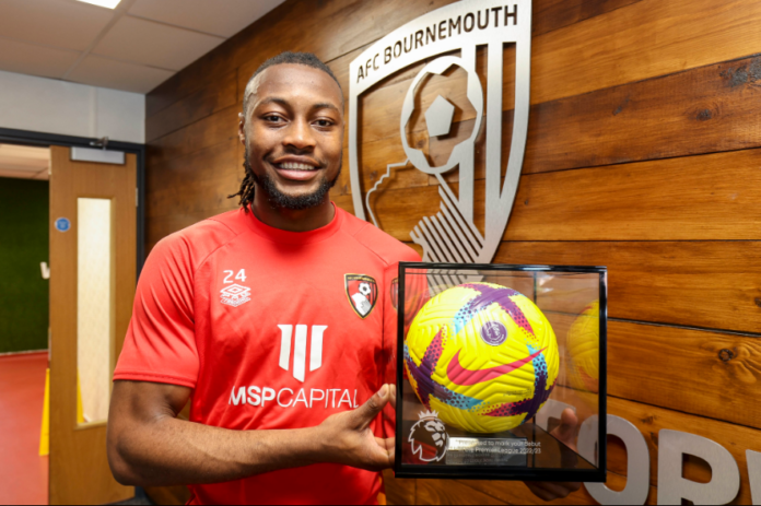 Ghana striker, Antoine Semenyo, has been presented with English Premier League debut ball after scoring his first goal for AFC Bournemouth.