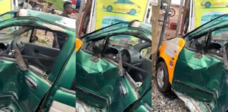 Train smashes taxi at Alajo