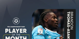 Brandon Thomas-Asante earns nomination for Championship Player of The Month