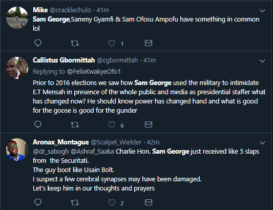 But some social media users have described Sam George’s claim as ridiculous because they expected him to sustain minor injuries if not major from the stray bullets that were fired.