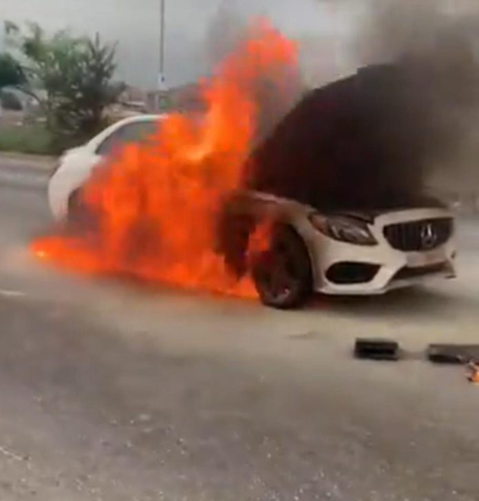 A man lost his newly acquired Mercedes-Benz yesterday at Anyaa, Accra, after it burst into flames in the middle of the road.