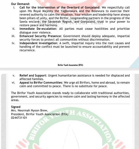 BYA also urged traditional leaders, including the Yagbonwura and the Bolewura, to exercise their authority in mediating the conflict and restoring peace. The association further demanded an independent investigation into the root causes of the clashes and the conduct of security agencies.