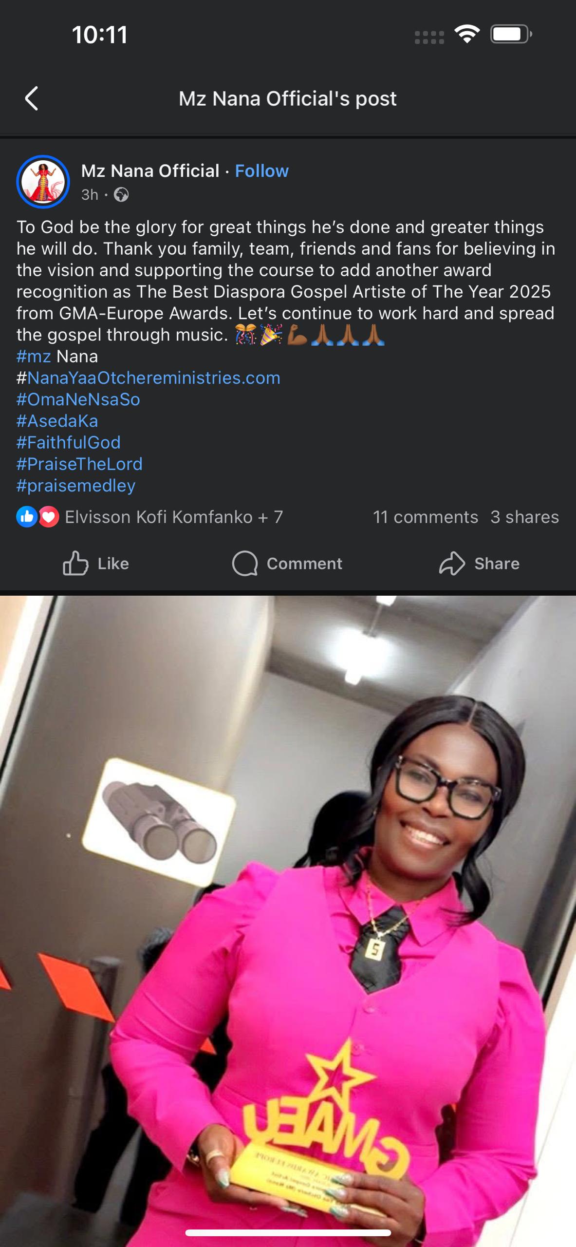 With this new honour from GMAEU 2025, Mz Nana has further solidified her position as one of the influential voices in gospel music from the diaspora, inspiring a new generation of gospel lovers both in Ghana and abroad.