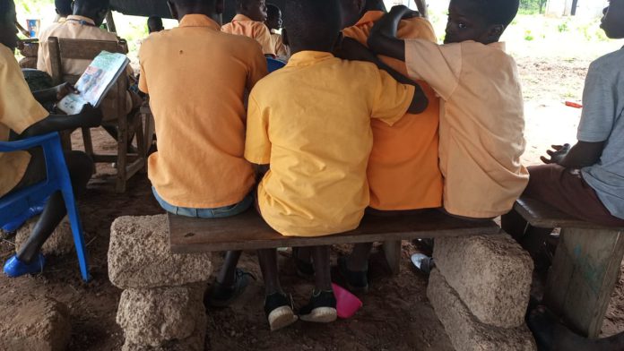 Pupils of Pechie Basic School in the Krachi West Municipality of the Oti Region are forced to sit on cement blocks and on the bare floor to study due to lack of proper infrastructure.