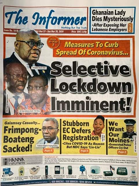 Check out the Weekend’s Newspaper Headlines Newspaper Headlines March 28, 2020 7:55 am - Audio By Carbonatix FacebookWhatsAppTwitterTelegramEmailPinterestPrint Previous articleAkufo-Addo donates salary to fight COVID-19Next articleQuarantined woman ‘kills herself’ RELATED ARTICLES Newspaper Headlines Newspaper headlines: Monday, November 24, 2025 Newspaper Headlines Newspaper headlines: Friday, November 21, 2025 Newspaper Headlines Newspaper headlines: Thursday, November 20, 2025