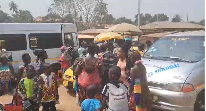 At the Nkawkaw new station and old Kumasi station, long queues of passengers waiting for buses have formed.