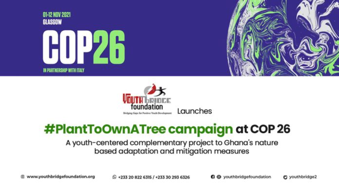 The Youth Bridge Foundation on Thursday launched its youth #PlantToOwnATree Campaign at the Ghana Pavilion as part of Ghana for Climate Change Day at the COP26 Summit.