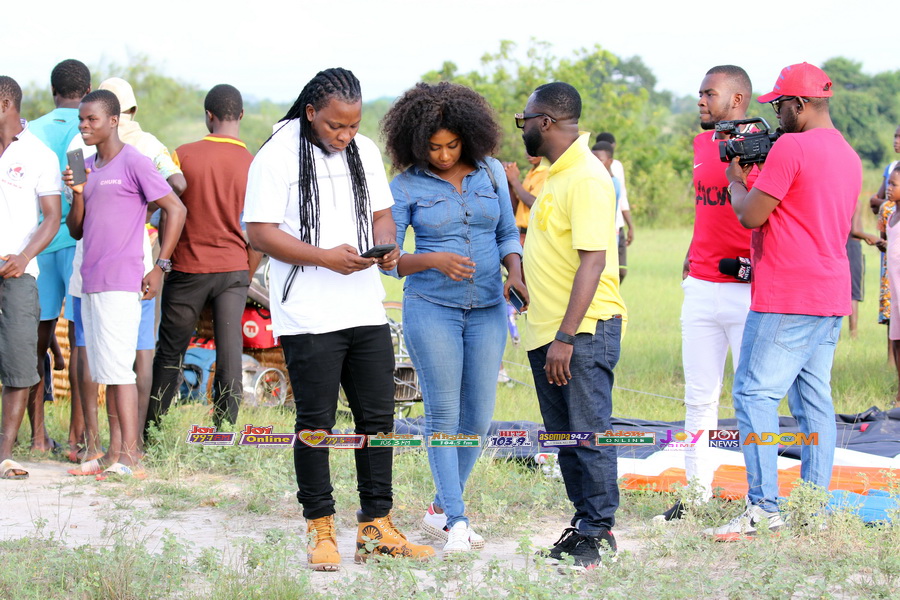 Daybreak Hitz on Hitz FM host, Andy Dosty, rapper Edem and actress, Selly Gally were the latest to fly of Cowbell’s trending Hot Air Balloon.