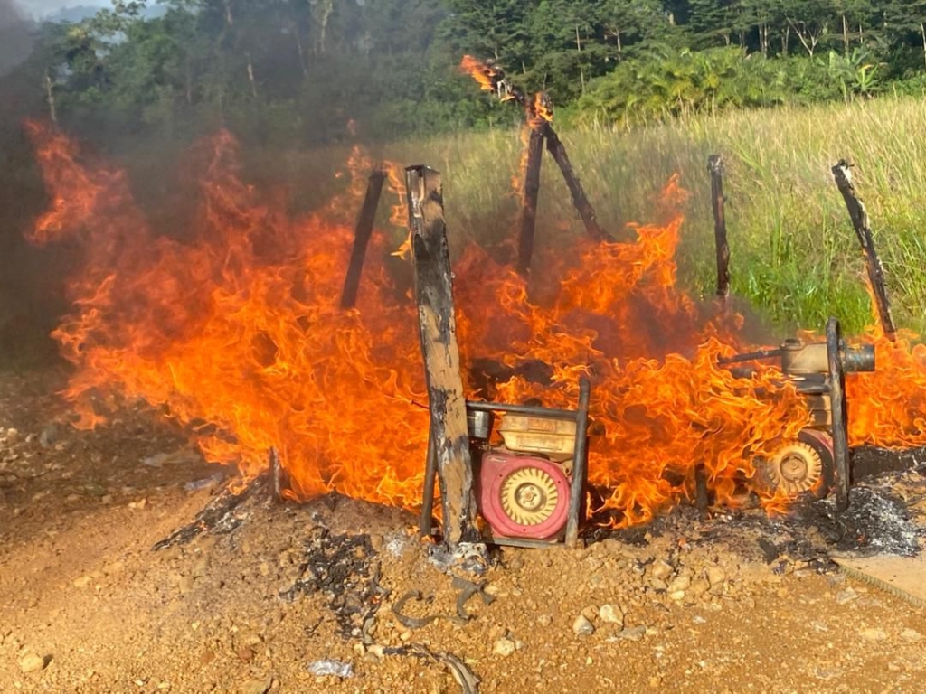 In addition, officers confiscated diesel fuel and two industrial pumping machines that were feeding water into processing pits.