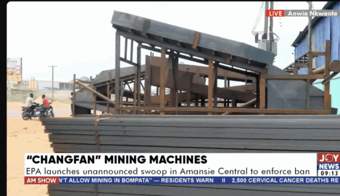 The enforcement action follows the government’s recent declaration banning the importation, use, and fabrication of Changfan machines — equipment widely linked to the destruction of water bodies and farmlands through illegal mining (galamsey).