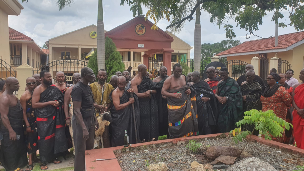 Akyeame and Nananom poured libation and sacrificed a sheep to traditionally solidify the declaration made by the Standing Committee.