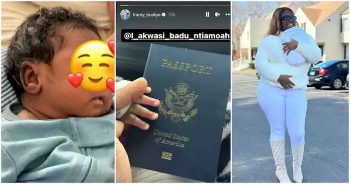 Ghanaian actress, Tracey Boakye, has shared an American passport of her newborn son, Akwasi Badu Ntiamoah on her Instagram story.