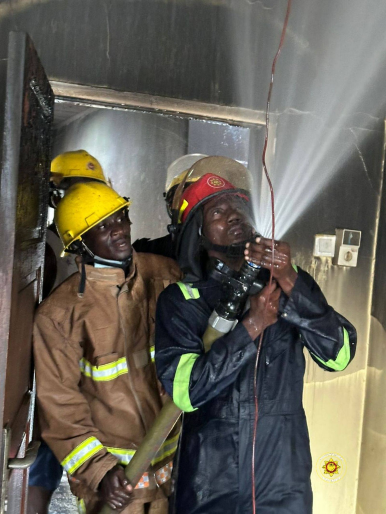 Firefighters from the Ghana National Fire Service Amasaman Fire Station responded swiftly to the incident, arriving to find the building engulfed in flames.