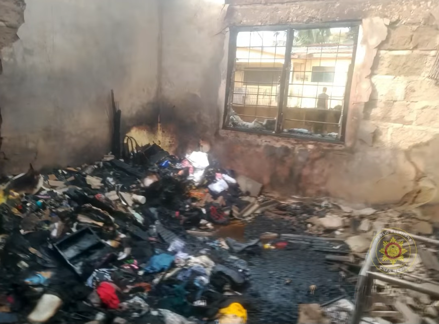 A two-bedroom apartment has been completely destroyed by fire at Kwashie Bu in Santa Maria, near Rect Academy in Accra, despite the swift response of firefighters.