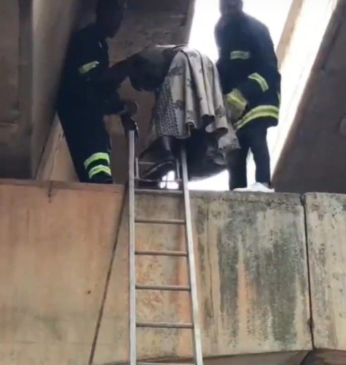 Personnel from the Suhum Ghana National Fire Service (GNFS) successfully rescued a mentally unstable man who was found stranded atop a pillar under an overpass in Suhum.