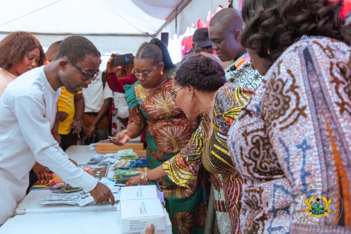 First Lady, H.E. Mrs Lordina Dramani Mahama, visited Sunyani on Thursday to organise a community health screening exercise in collaboration with the Ghana AIDS Commission.