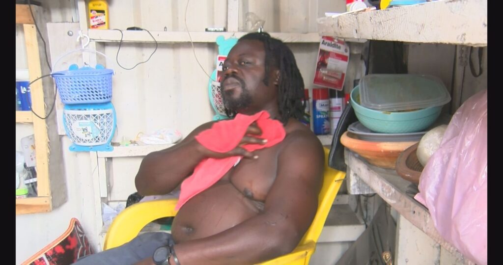 “It’s like an oven inside. I can’t sleep. My skin itches, and I feel dizzy most nights,” said Seth Kusi, a glass repairer living in a metal kiosk.