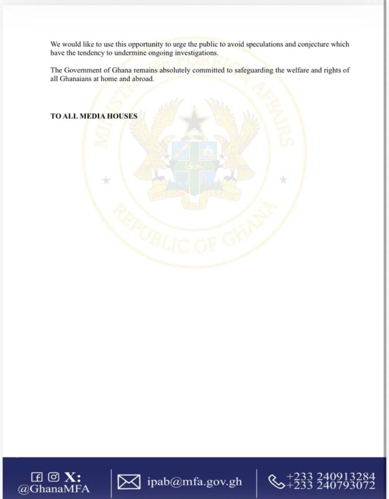 “The Government of Ghana remains absolutely committed to safeguarding the welfare and rights of all Ghanaians at home and abroad,” the statement concluded.