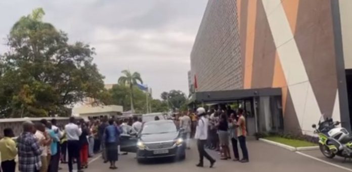 In a video that has since gone viral, the staff were lined up on the forecourt of the Finance Ministry singing songs of victory to welcome the Finance Minister.