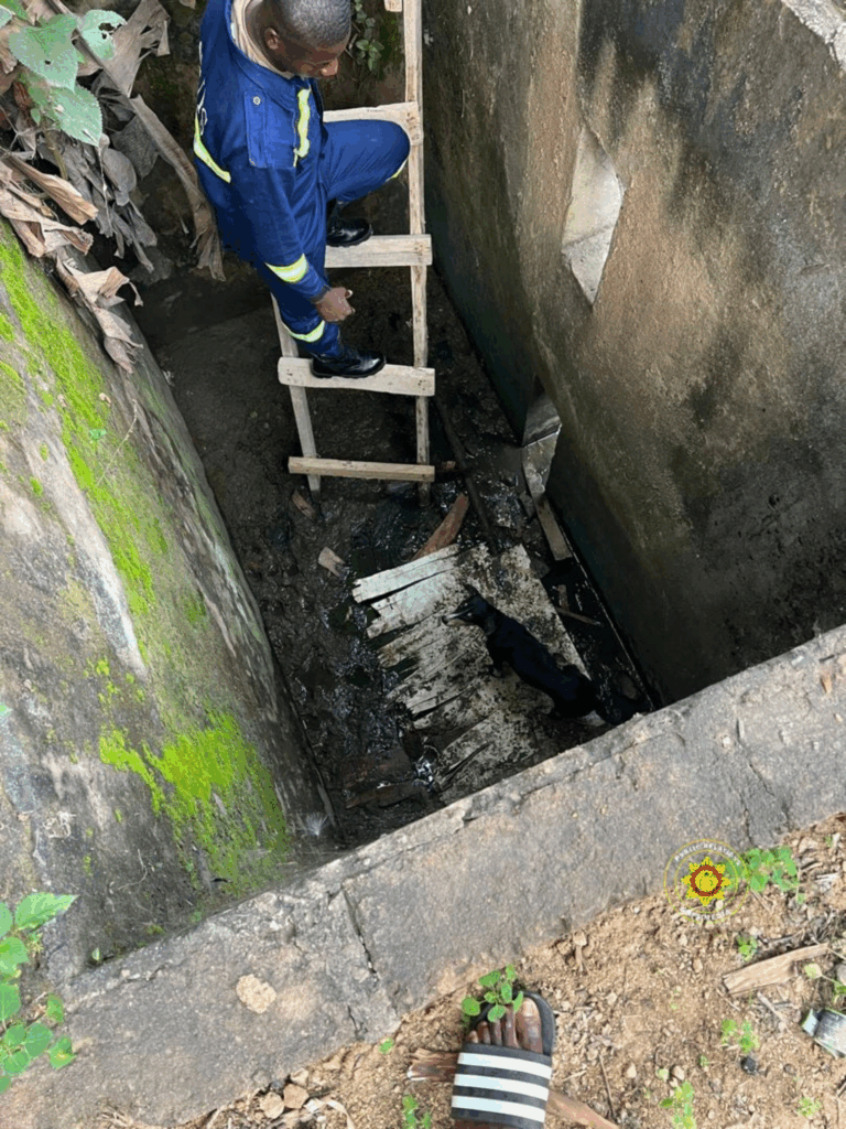 The Ghana National Fire Service (GNFS) has successfully rescued a dog that fell into a well at Amamorley Canada Junction following a swift emergency response that prevented the incident from turning fatal.