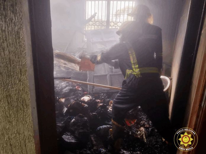 A fierce fire on Thursday morning gutted the top floor of a one-storey building at Mamprobi Sureway in Accra, but rapid intervention by the Ghana National Fire Service (GNFS) prevented the blaze from consuming the entire structure.