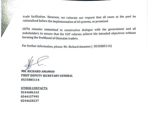 GUTA reiterated its commitment to working with the government and stakeholders to ensure the reforms strengthen revenue mobilisation without harming the livelihoods of Ghanaian traders.
