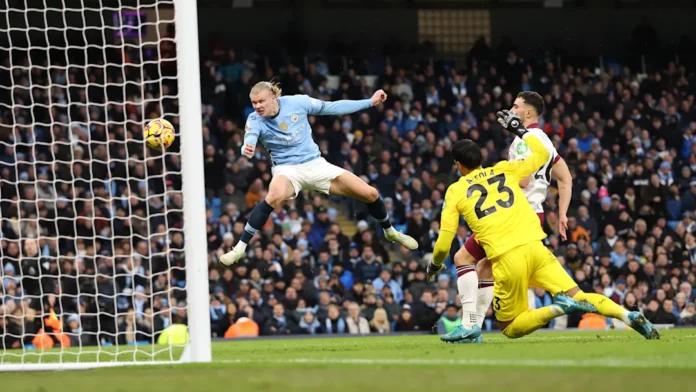 Haaland followed up his header late in the first half by calmly chipping over advancing West Ham keeper Alphonse Areola after running on to a through ball from Savinho.
