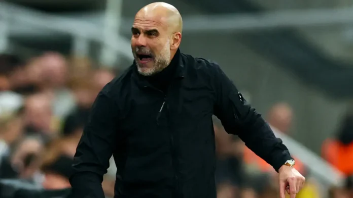 Guardiola was shown a yellow card after confronting fourth official Lewis Smith on the touchline at St James’ Park after Kieran Trippier had fouled City’s Jeremy Doku.