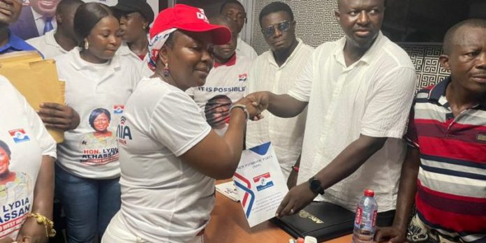 Accompanied by constituency executives and delegates, Lydia Seyram Alhassan marched through the streets of Dzorwulu to file her nomination.