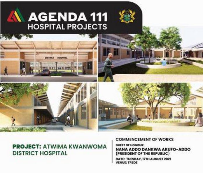 The project will cover the design, procurement, construction, equipping, and commissioning of 101 District Hospitals, 6 Regional Hospitals in newly created regions, 1 Regional Hospital in the Western Region, 2 Psychiatric