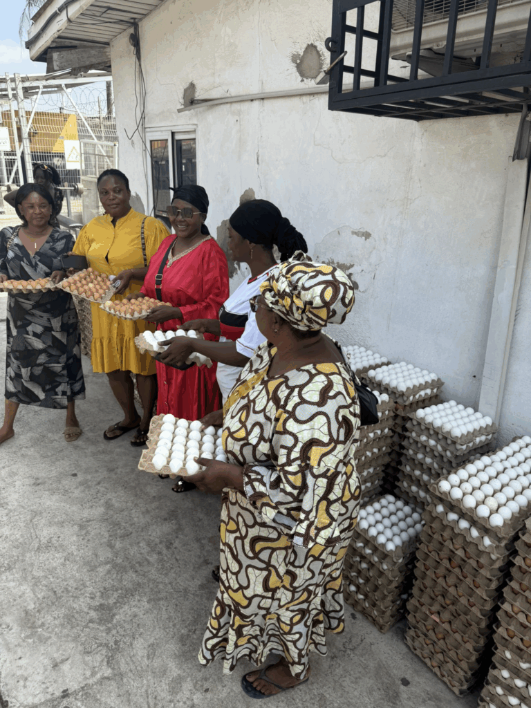 Dumelo presented 50 gallons of cooking oil, 400 bags of locally produced rice, 1,000 crates of eggs, and one tonne of Ghanaian chicken to the caterers.