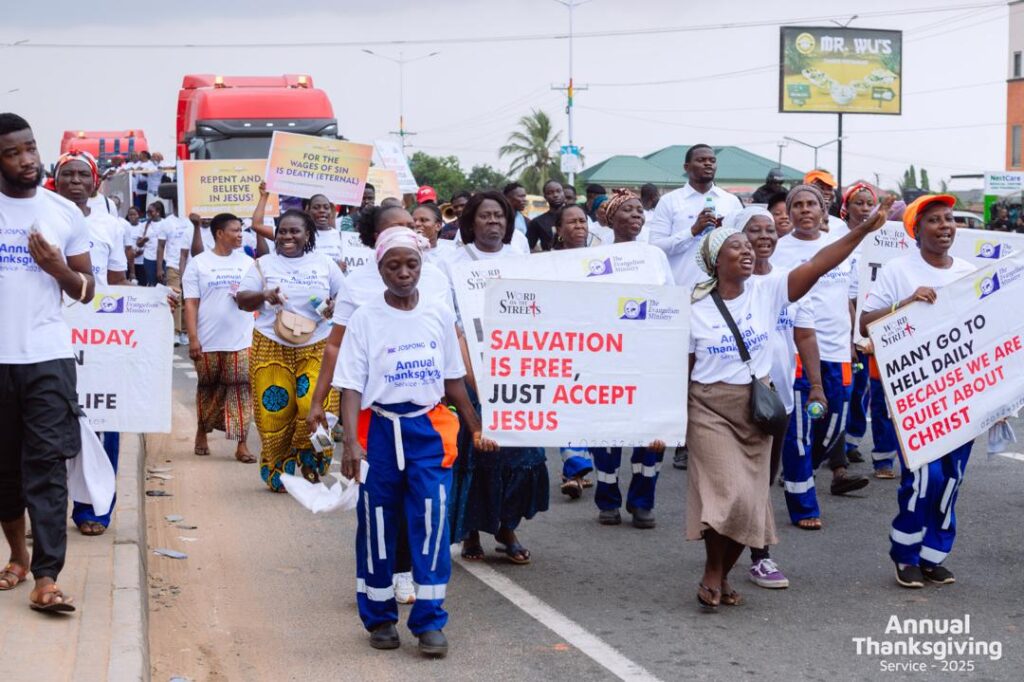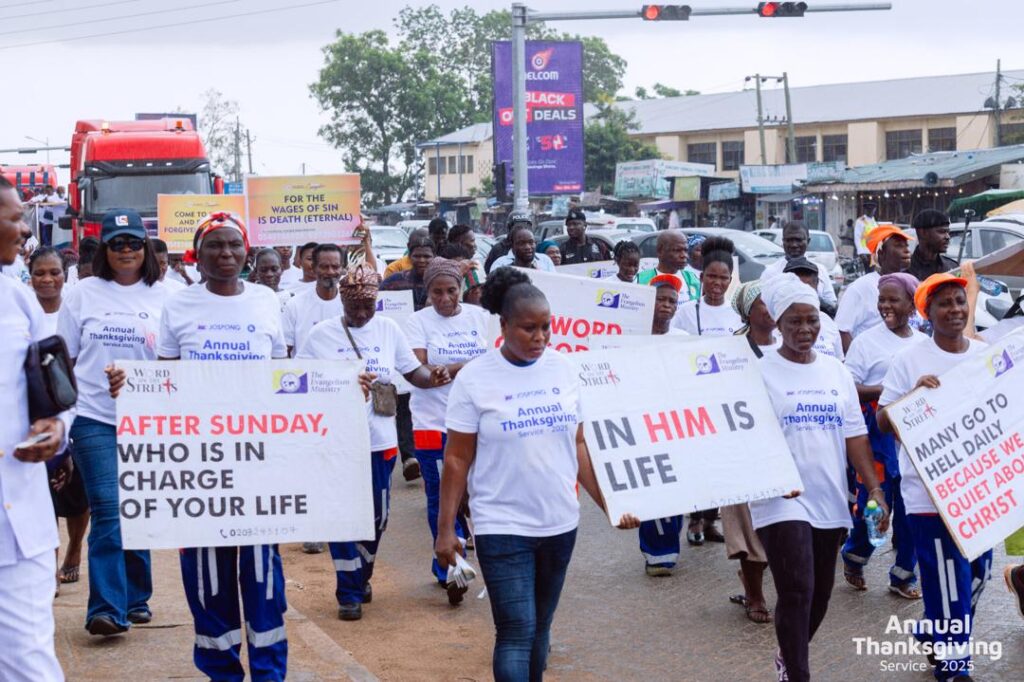 As part of its 2025 Annual Thanksgiving Service, the Jospong Group of Companies (JGC) on Thursday, December 11, embarked on a massive evangelism mission within the Adjrigarnor enclave where its head office is located to win souls for Christ.