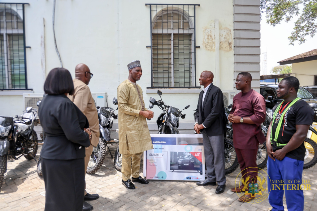Kantanka Automobile Company Limited has donated eight motorbikes and two television sets to the Ministry of the Interior to support its operational activities.