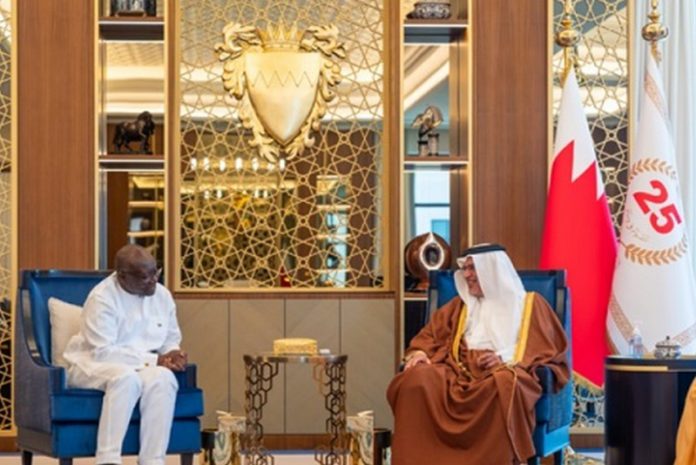 His Royal Highness Prince Salman bin Hamad Al Khalifa, the Crown Prince and Prime Minister of Bahrain, welcomed Ghana’s Senior Presidential Advisor and Special Envoy for International Finance and Private Sector Investments, Ken Ofori-Atta at the Gudaibiya Palace in Bahrain on Tuesday, June 4, 2024.