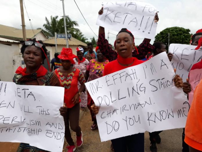 A group of polling station executives, elders and grassroots members of the New Patriotic Party in the Keta Municipality of the Volta Region have embarked on a demonstration against the nominee of the President for the post of Keta Municipal Chief Executive.