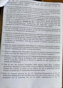 He cites breaches of the University’s Statutes in the reappointment of the Vice-Chancellor supervised by the former Chief Justice, Kwasi Anin-Yeboah, who is the Chairperson of the University’s Council.