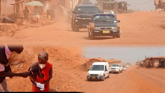 “Our people in this Denkyembuoso community are suffering from asthma due to the dust, and some have even died. “Why are we being punished like this? Our leaders seem unbothered about our health,” a resident lamented, suggesting they at least water the road to reduce the dust.