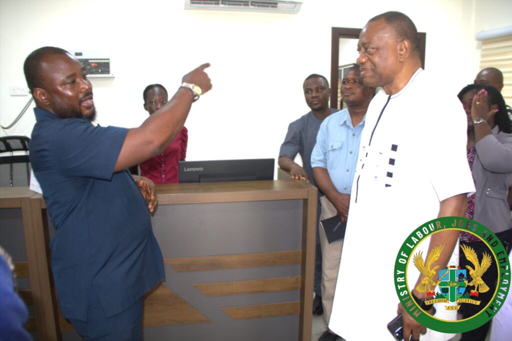 The Minister for Labour, Jobs and Employment, Dr. Abdul-Rashid Hassan Pelpuo, has paid a working visit to the Amasaman Public Employment Centre (PEC) as part of efforts to strengthen labour administration and enhance employment facilitation services nationwide.