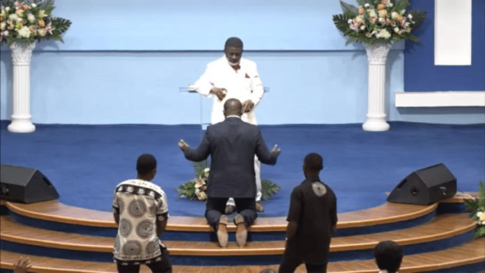 In a video, Bishop Charles Agyin-Asare laid hands on the legislator and offered prayers on his behalf as he pours anointing oil on his head.