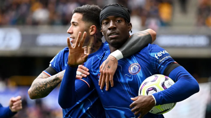 Noni Madueke’s hat-trick gave Chelsea their first Premier League victory of the season as they beat Wolves in a pulsating and chaotic encounter.